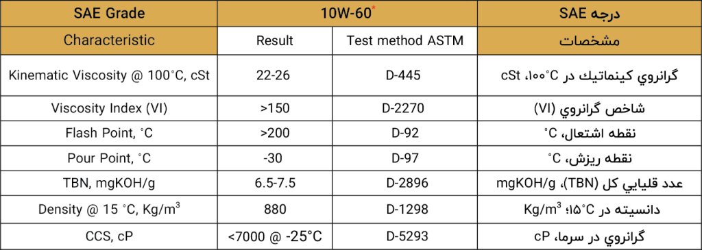 • قابلیت عالي و مطمئن در روانكاري قطعات موتور